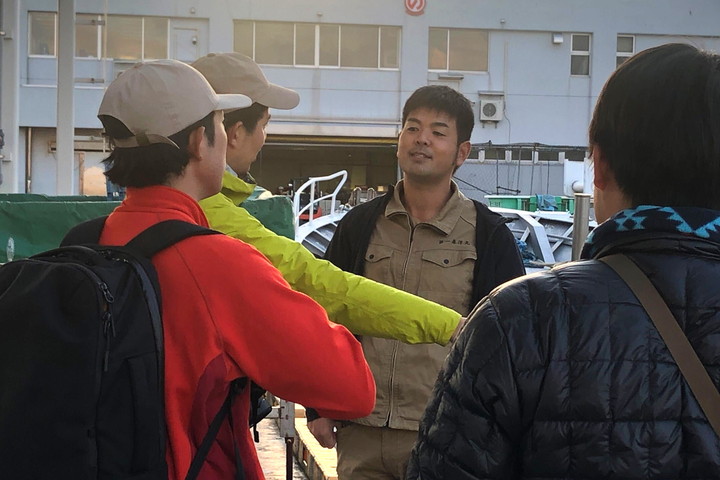 「ようこそ、尾岱沼漁港へ」。笑顔で迎えてくれたのは漁師の鈴木翼さん。楽しみ4割、緊張6割のこちらの心を知っているかのように、「なんでも聞いてください。なんでも答えますんで」と一言。にこやかな表情とその朗らかな言いっぷりに緊張は解けてなくなり、空いたスペースには好奇心がうねりをあげて押し寄せてきた。